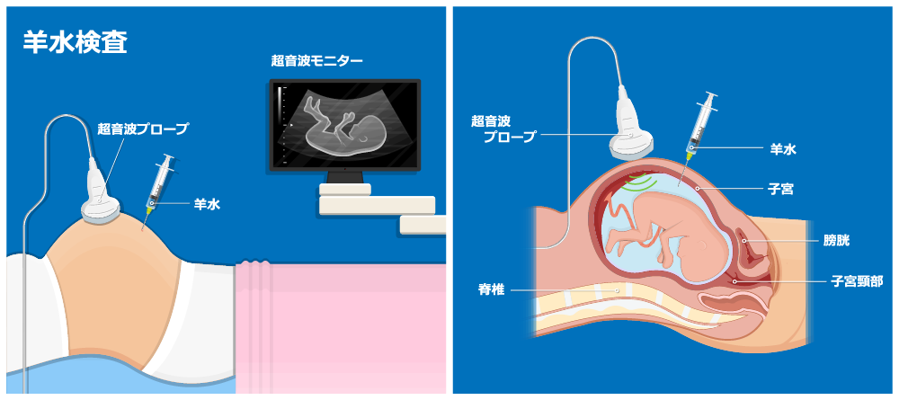 | 方法 | 母体の血液を採取してDNA解析 | 羊水を採取し、胎児の染色体を直接調べる |
